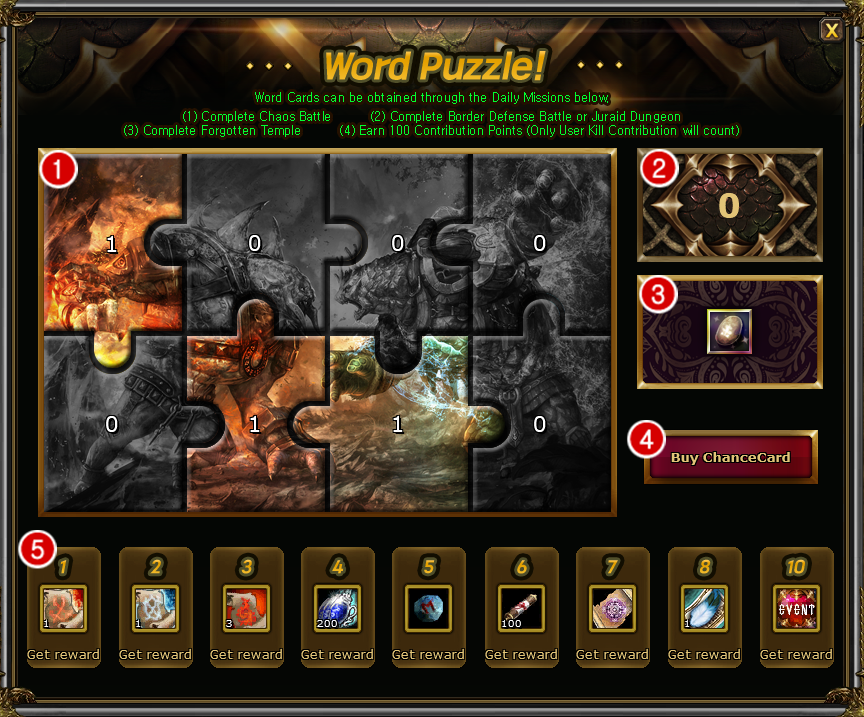 After logging in to the game, you can reach the puzzle event with the 'Star' button in the lower left corner, collect the puzzle pieces and receive your gifts by fulfilling the conditions.