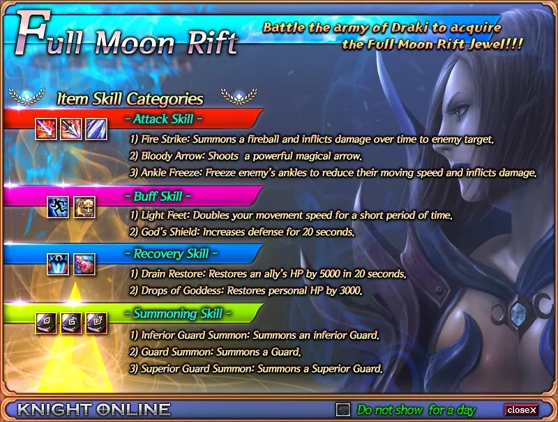 *Players can also use the skills of the Chaos event and additionally the skills specific to the Full Moon Rift.